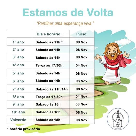 A Paróquia de Valpaços, indica o dia, horário e data de inicio da catequese.