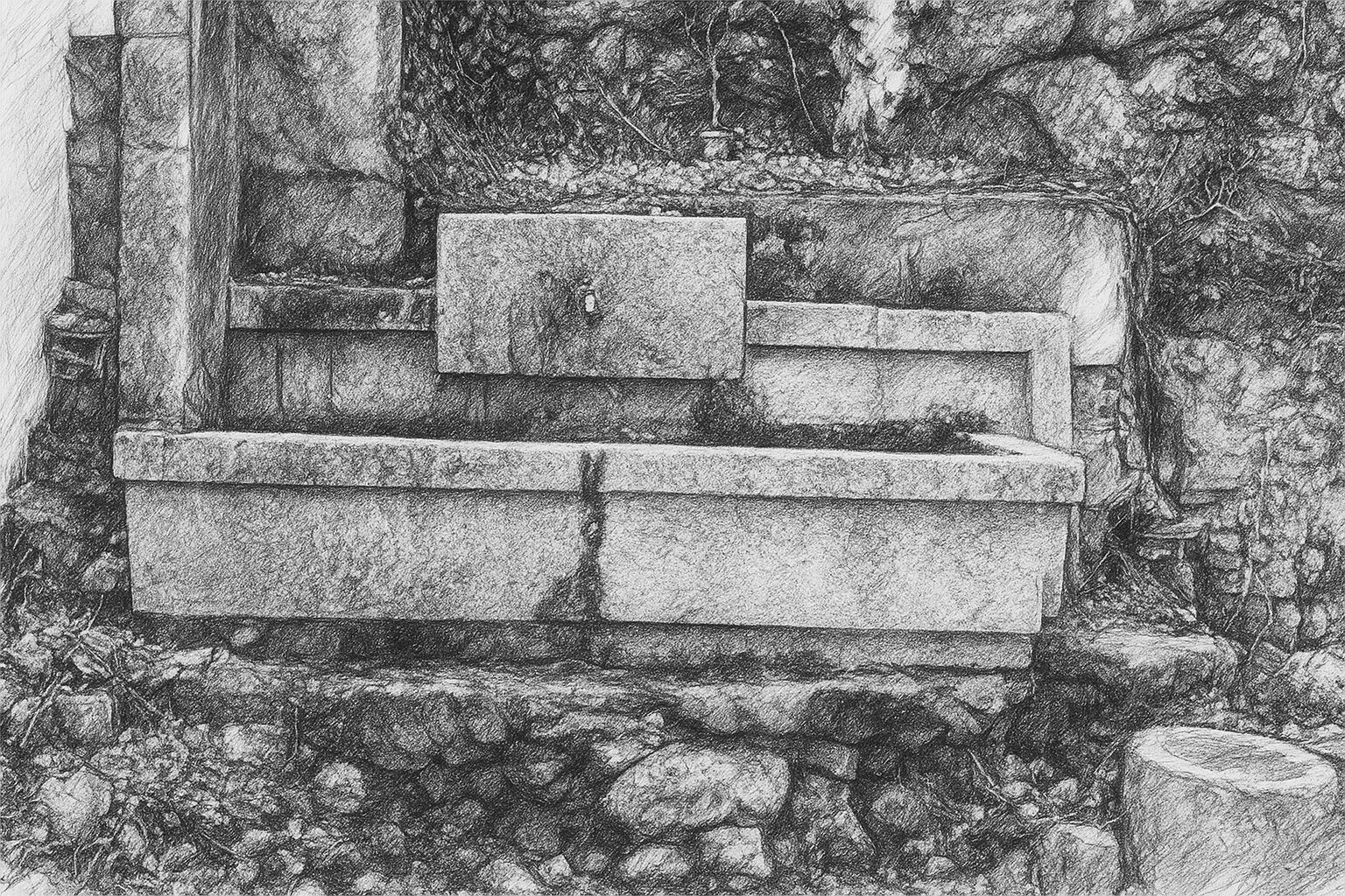 - A água cai num tanque de pedra que serve para recolher e armazenar, antigamente era usada para dar de beber aos animais.