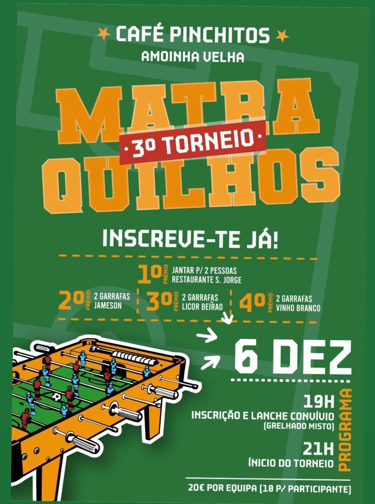 Realiza-se a 6 de dezembro, o 3º Torneio de “Matra Quilhos” em Amoinha Velha, organizado pelo café Pinchitos.