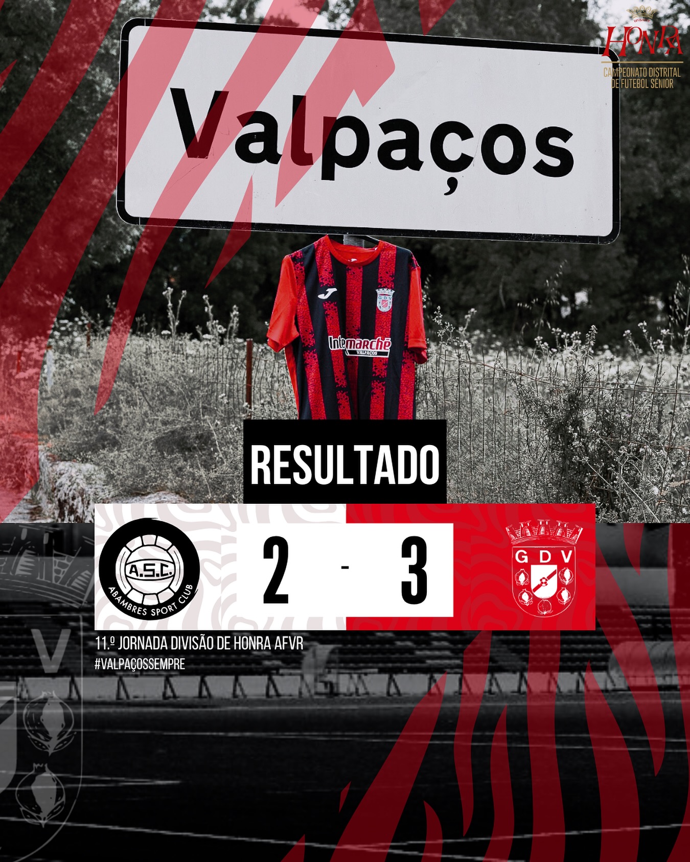 Terminou a 11ª Jornada da Divisão de Honra AFVR, com uma vitória para o GD Valpaços por 3-2, contra o Abambres SC, num jogo intenso do início ao fim.