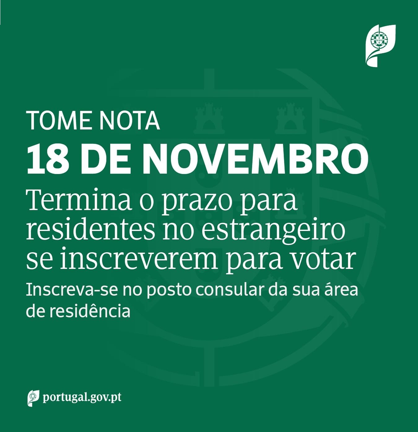 Se reside no estrangeiro e quer votar nas próximas eleições, ainda vai a tempo de se inscrever para votar no posto consular da sua área de residência. O prazo termina amanhã, 18 de novembro.