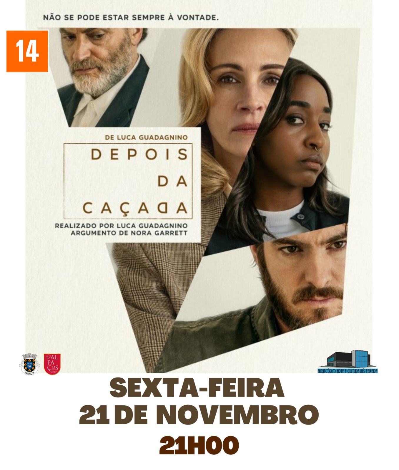 𝙐𝙢 𝘿𝙧𝙖𝙢𝙖 (𝙈𝟭𝟰), 𝙘𝙤𝙢 𝟮𝙝 𝟭𝟵 𝙢𝙞𝙣𝙪𝙩𝙤𝙨, 𝙖 𝙣𝙖̃𝙤 𝙥𝙚𝙧𝙙𝙚𝙧, 𝙨𝙚𝙭𝙩𝙖-𝙛𝙚𝙞𝙧𝙖, 𝙙𝙞𝙖 𝟮𝟭 𝙙𝙚 𝙣𝙤𝙫𝙚𝙢𝙗𝙧𝙤, 𝙥𝙚𝙡𝙖𝙨 𝟮𝟭𝙝𝟬𝟬, 𝙣𝙤 𝘼𝙪𝙙𝙞𝙩𝙤́𝙧𝙞𝙤 𝘼𝙧𝙩𝙚 𝙚 𝘾𝙪𝙡𝙩𝙪𝙧𝙖 𝙇𝙪𝙞́𝙨 𝙏𝙚𝙞𝙭𝙚𝙞𝙧𝙖.