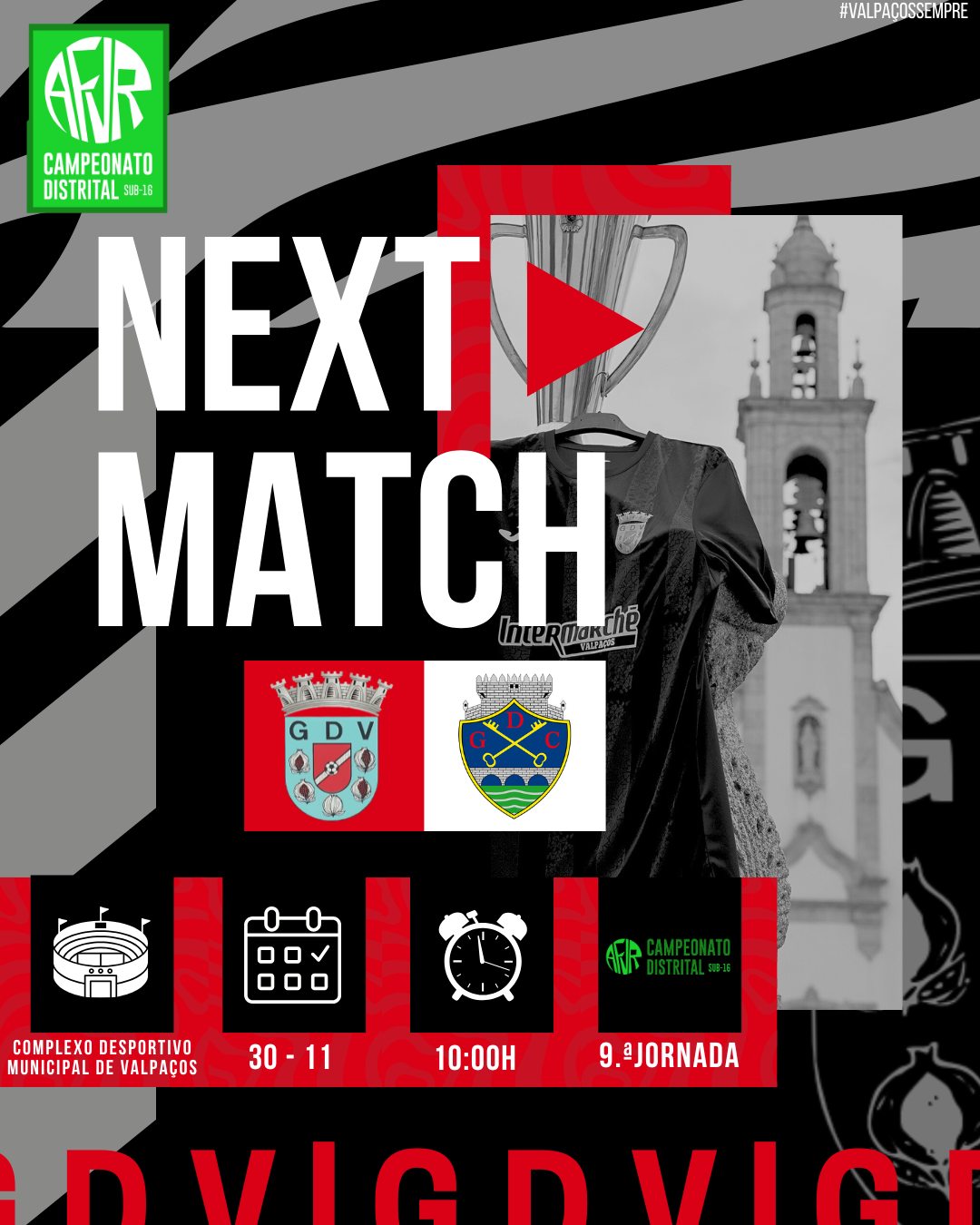 Este domingo, o GD Valpaços volta a entrar em campo para mais uma batalha, a 7ª Jornada do Campeonato Distrital Sub-16. Desta vez o GD Valpaços recebe em sua casa o 𝗚𝗗 𝗖𝗵𝗮𝘃𝗲𝘀 𝗔, num jogo que promete emoção, intensidade e muito espírito de equipa.