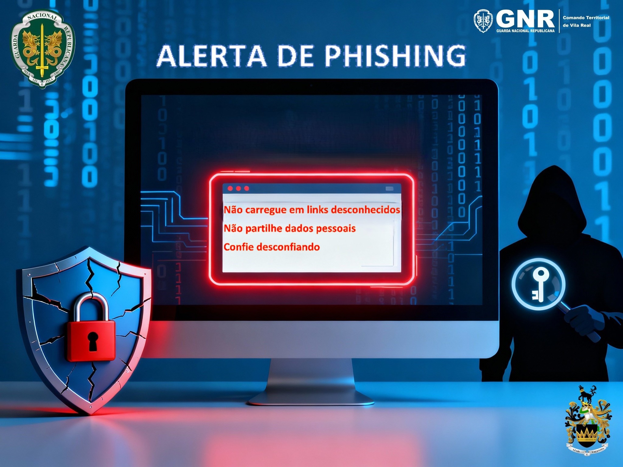 O Comando Territorial de Vila Real da Guarda Nacional Republicana (GNR), alerta todos os cidadãos para a crescente ameaçam de phishing, uma técnica utilizada por criminosos, para enganar e roubar as informações mais valiosas.