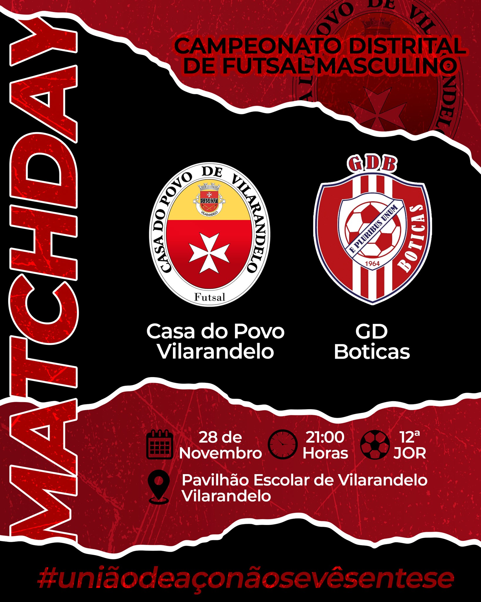 O Clube de Futsal da Casa do Povo de Vilarandelo recebe o GD Boticas a contar para a ๐๐ยช ๐๐จ๐ซ๐ง๐๐๐ do ๐๐๐ฆ๐ฉ๐๐จ๐ง๐๐ญ๐จ ๐๐ข๐ฌ๐ญ๐ซ๐ข๐ญ๐๐ฅ ๐๐ ๐ ๐ฎ๐ญ๐ฌ๐๐ฅ ๐๐๐ฌ๐๐ฎ๐ฅ๐ข๐ง๐จ.