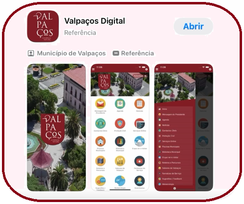 A App Valpaços Digital, é uma aplicação inovadora de atendimento ao cidadão, que disponibiliza on-line, diversos serviços da Câmara, tais como a consulta de processos e um acesso a um conjunto de formulários e documentos oficiais de interesse para o cidadão, bem como outro tipo de serviços, alertas da proteção civil, agenda cultural e informações úteis quer para o munícipe quer a quem nos visita.