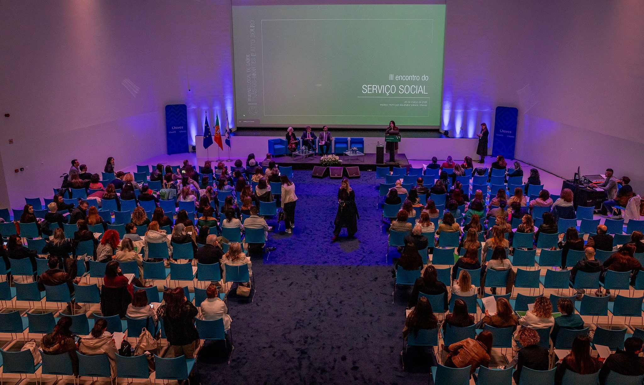 A sessรฃo de abertura contou com a presenรงa do Presidente da Cรขmara Municipal de Chaves, Dr. Nuno Vaz, do Dr. Jaime Alves, Vogal do Conselho de Administraรงรฃo da ULSTMAD, em representaรงรฃo da Presidente do Conselho de Administraรงรฃo, Dra. Sara Mota, da Bastonรกria da Ordem dos Assistentes Sociais, Dra. Fernanda Rodrigues, e da Diretora do Serviรงo Social da ULSTMAD e membro da Comissรฃo Organizadora, Dra. Maria Joรฃo Artilheiro.