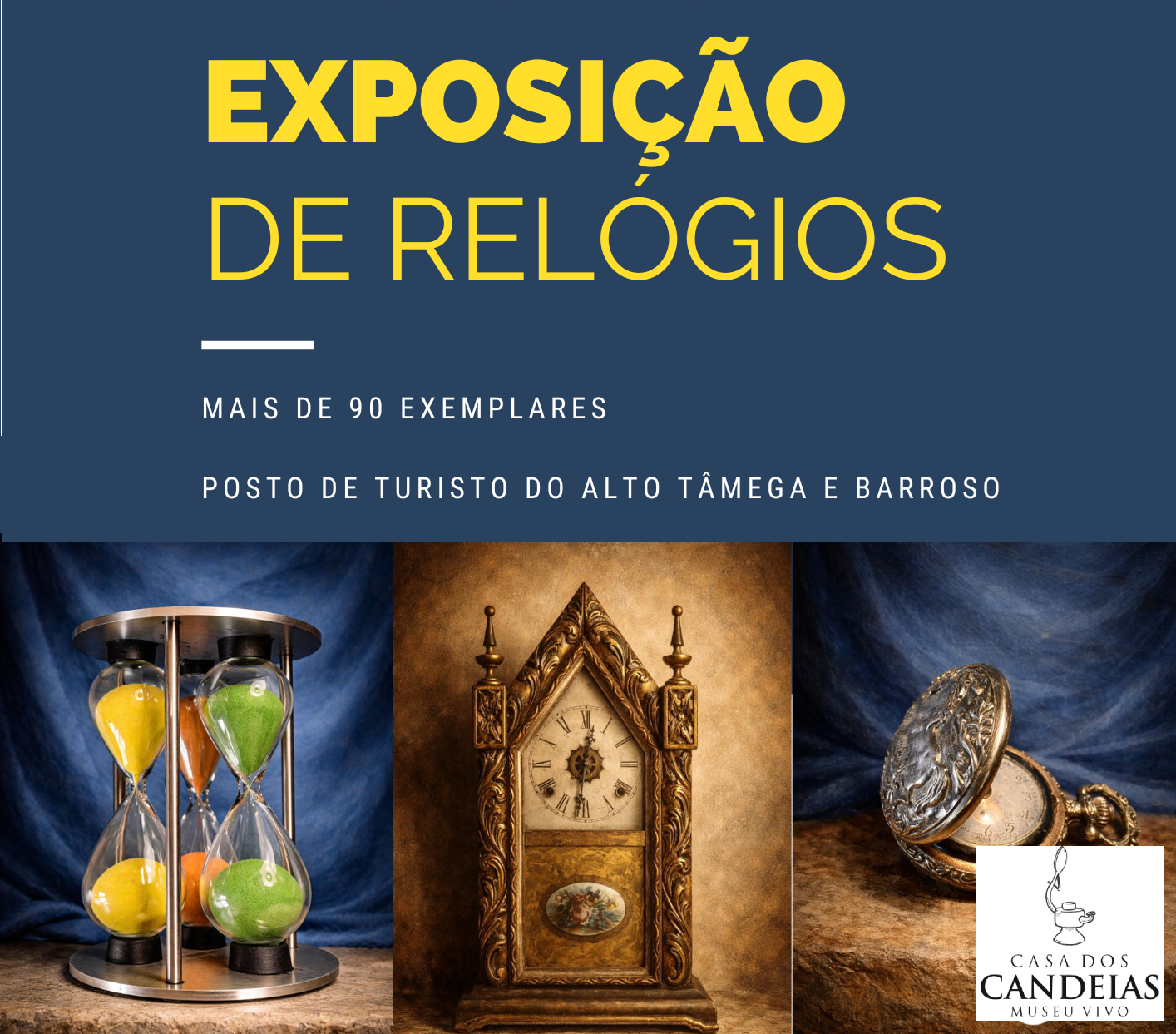 O Posto de Turismo do Alto Tâmega e Barroso (PTAT) recebe, entre os dias 15 de abril e 03 de maio, uma exposição dedicada ao universo dos relógios antigos, numa iniciativa desenvolvida em parceria com a Casa dos Candeias – Museu Vivo.